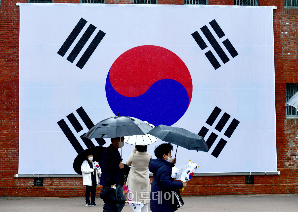 [포토] 삼일절 '서대문형무소역사관에 걸린 대형 태극기'