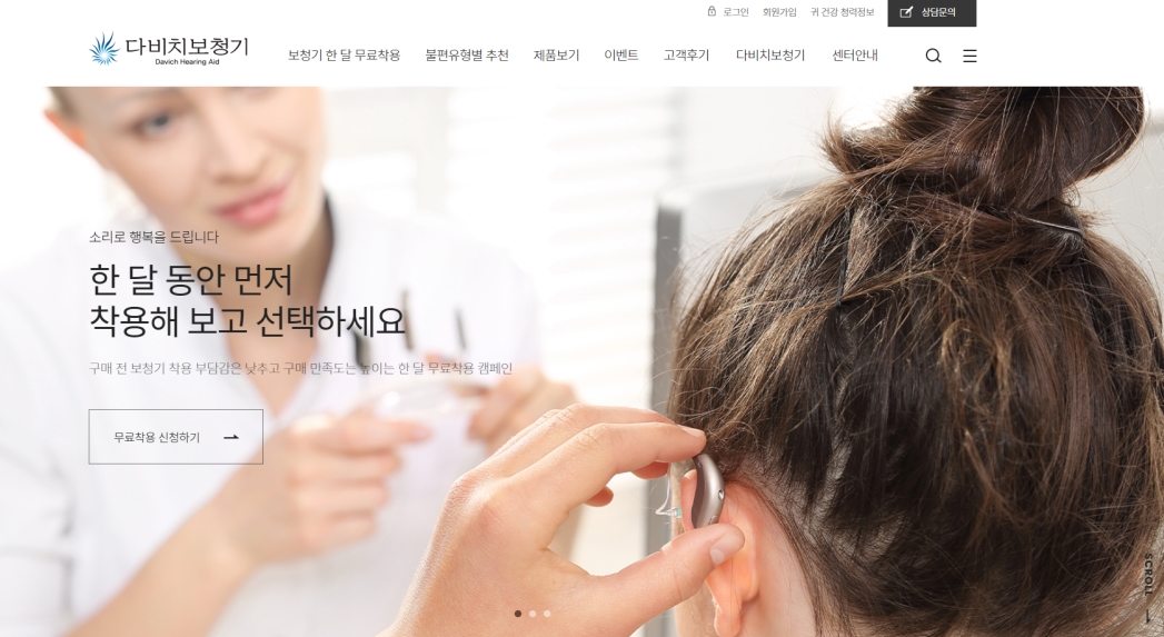 문동혁 다비치보청기 사업본부 책임연구원은 "온라인을 통한 보청기 한 달 무료착용, 상담문의 신청 서비스를 통해 사용자의 접근성과 편의성을 높이고, 한 달 무료착용 및 난청 상담 온라인 예약 등 고객 중심의 전문 콘텐츠가 핵심"이며, "홈페이지 오픈 후 동시접속 방문자가 많아 다운되는 등 보청기 한 달 무료착용에 대한 고객 니즈를 확인할 수 있었다"고 말했다.