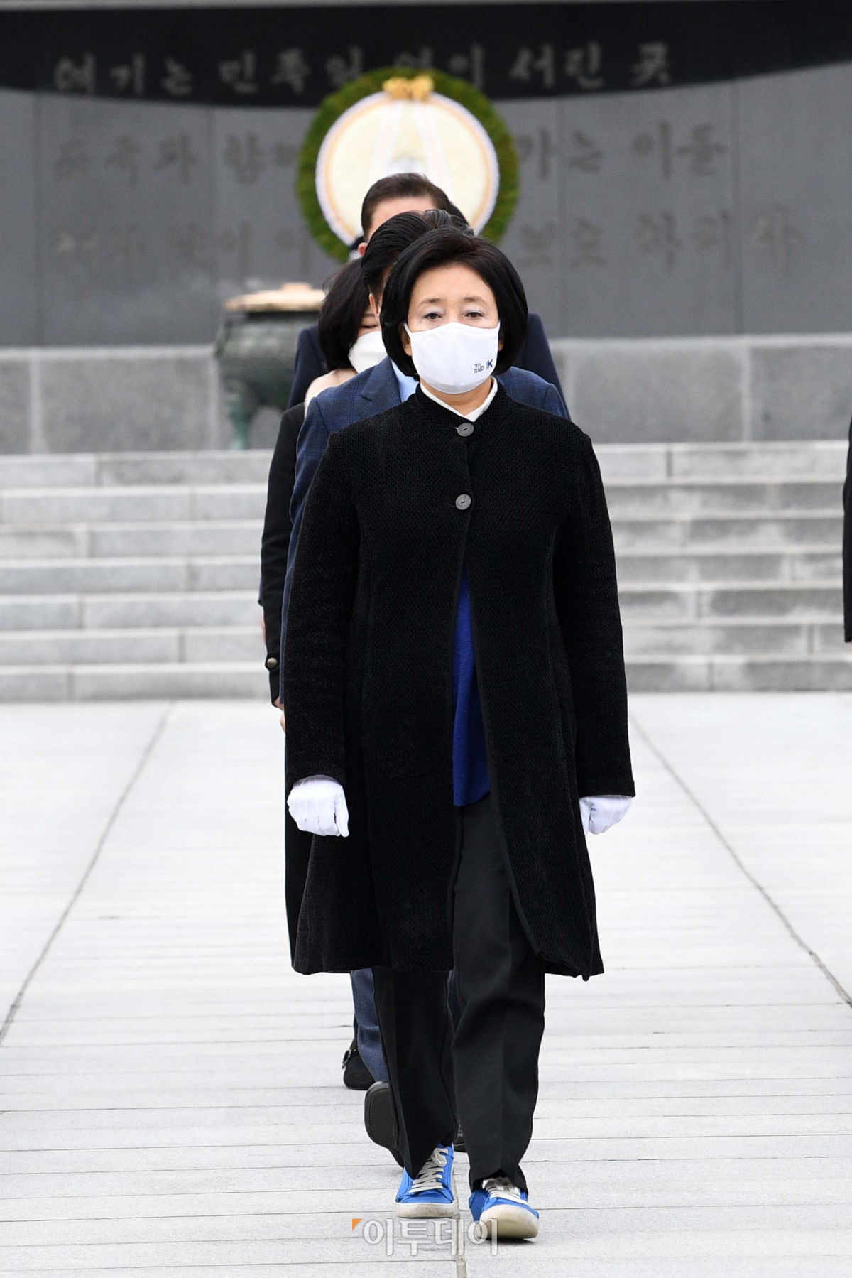 박영선 더불어민주당 서울시장 후보가 2일 오전 서울 동작구 국립서울현충원에서 현충탑 참배를 마친 후 나서고 있다. 국회사진취재단