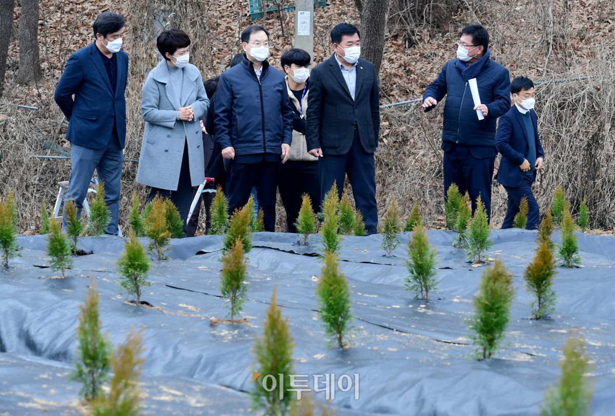 이헌승 국민의힘 국토교통위원회 간사와 국토위 위원들이 4일 광명·시흥 신도시가 들어설 부지를 LH 직원들이 조직적으로 사들였다는 의혹이 제기된 경기 시흥시 과림동 현장을 살펴보고 있다.