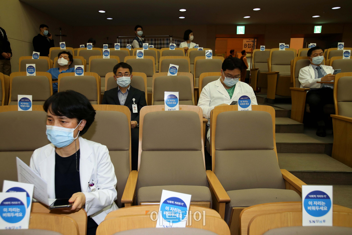 4일 서울 종로구 서울대학교 어린이병원 내 강의실에서 의료진 대상 코로나19 아스트라제네카(AZ) 백신 접종이 진행됐다. 이날 총 50여명의 의료진이 백신을 접종했다. 접조을 마친 의료진들이 15분간 대기하고 있다. 사진공동취재단