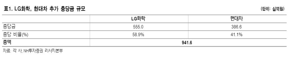 황 연구원은 “4분기 전기차(EV)용 2차 전지 충당금으로 반영된 비용은 약 590억 원이었고, 이번 합의로 추가 반영되는 비용은 약 5550억 원인 것으로 보인다”면서 “회계적으로 리콜 비용은 지난 4분기 실적으로 반영되며, LG화학은 전년도 재무제표를 수정 공시했다”고 설명했다.