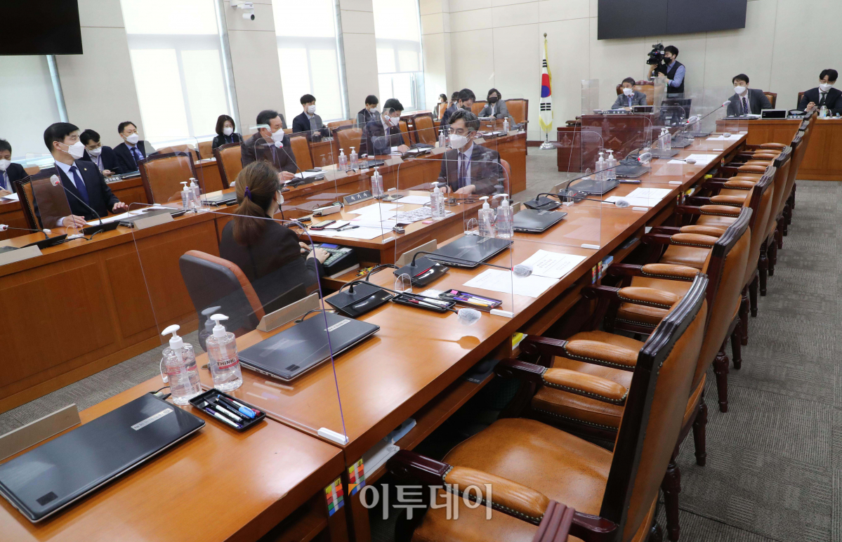 9일 오전 서울 국회에서 열린 행전안전위 소위에 국민의힘 의원들이 불참하자 한병도 소위위원장이 정회를 하고 있다.