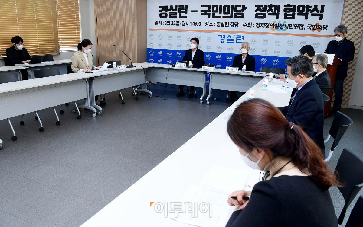 안철수 국민의당 서울시장 후보가 22일 서울 종로구 경제정의실천시민연합에서 열린 ‘국민의당-경실련 정책협약식’에서 인사말을 하고 있다.