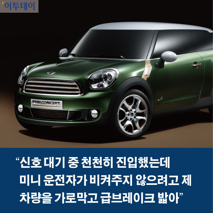맥라렌 측은 “신호 대기 중 천천히 진입했는데 미니 운전자가 비켜주지 않으려고 제 차량을 가로막고 급브레이크를 밟았다”고 했다.