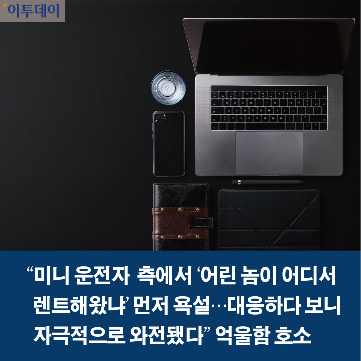그리고 “미니 운전자 아내가 ‘어린 놈이 어디서 렌트해왔냐’ 먼저 욕설…대응하다 보니 자극적으로 와전됐다”며 억울하다고 했다.