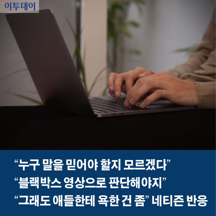 누리꾼들은 “누구 말을 믿어야 할지 모르겠다”, “블랙박스 영상으로 판단해야지”, “그래도 애들한테 욕한 건 좀…” 등과 같은 반응을 보였다.