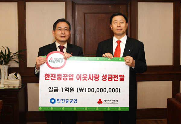 한진중공업은 연말 연시를 맞아 어려운 이웃들에게 삶의 희망을 전하기 위해 부산사회복지 공동모금회에 성금 1억원을 전달했다고 19일 밝혔다.