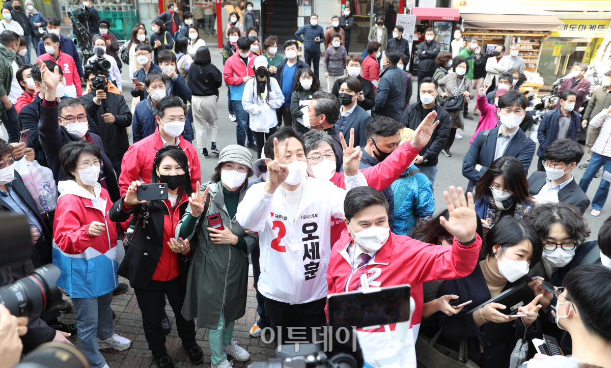 [포토] 남대문시장 찾은 오세훈 국민의힘 서울시장 후보