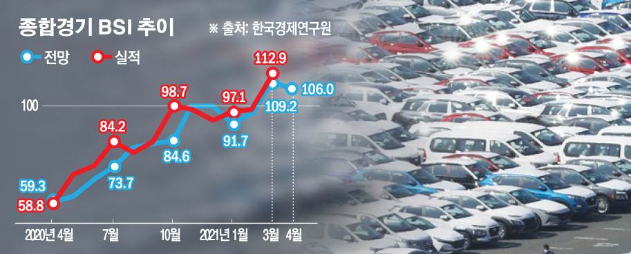 국내외 수요 회복 영향으로 2개월 연속 100선을 웃돌았지만, 지난달보다 3.2p(포인트) 줄며 호조세가 둔화했다.