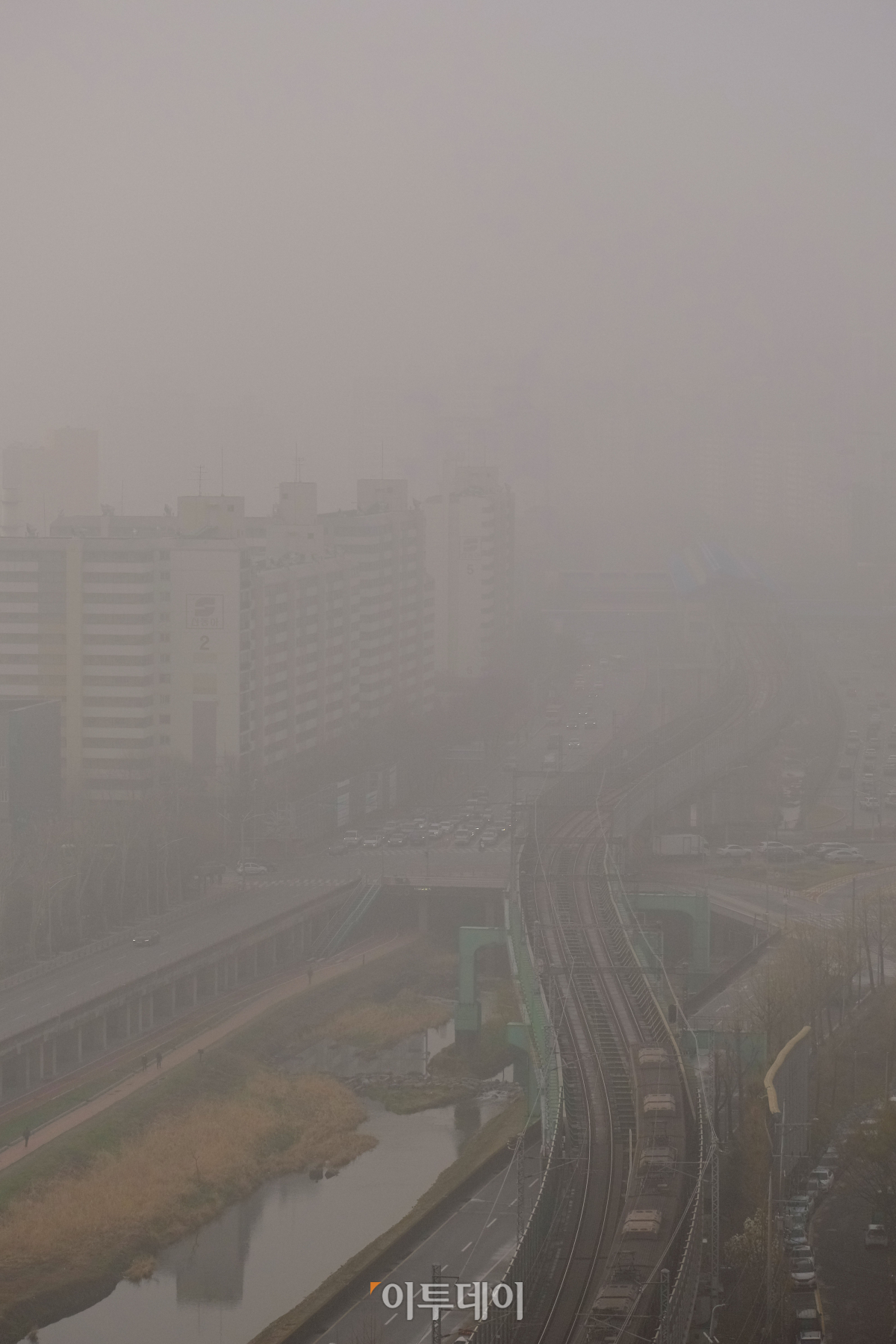 서울 전역에 황사경보가 발효된 29일 오전 서울 대림역 일대가 뿌옇다.