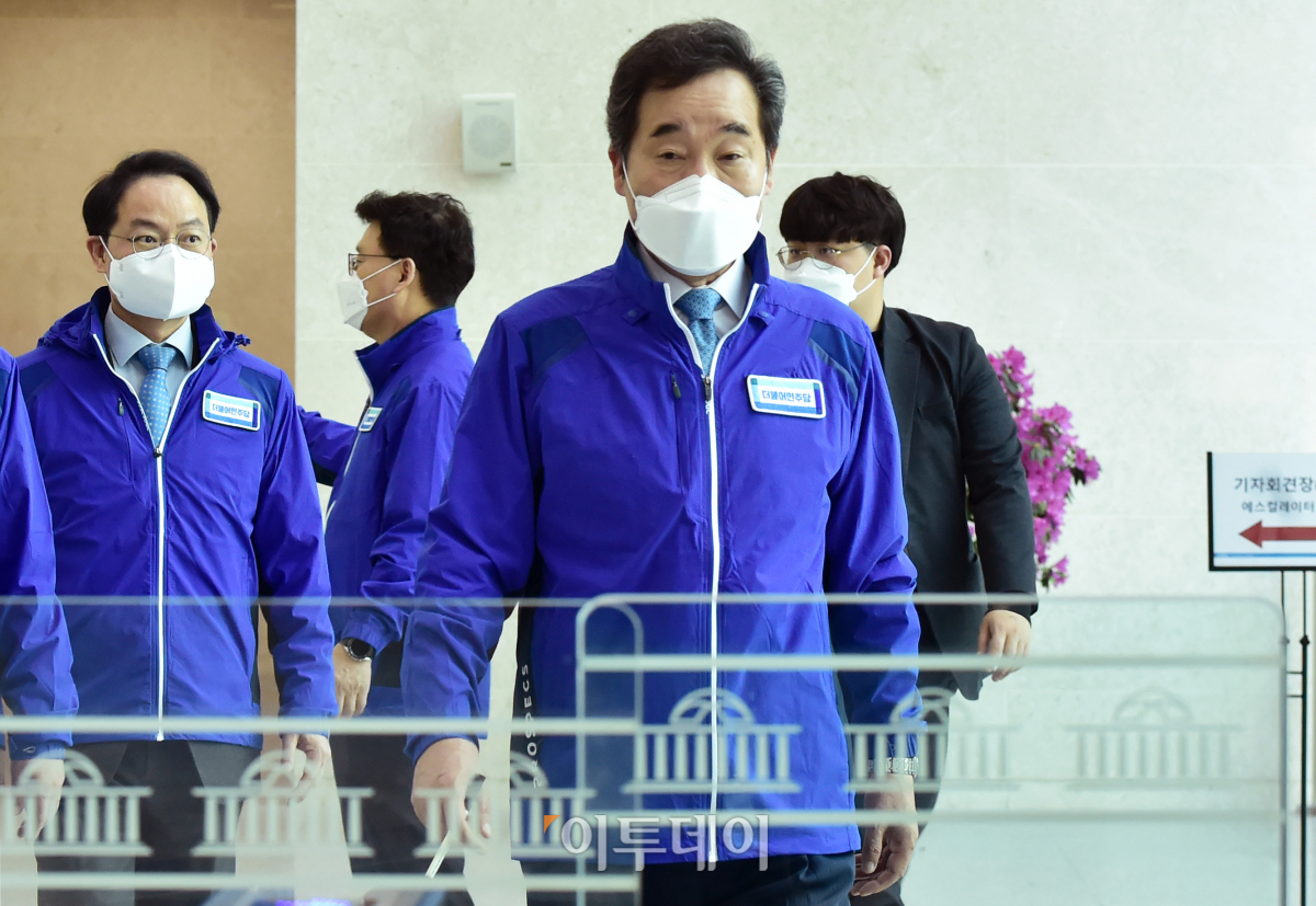 4.7 재보선이 일주일 앞으로 다가온 31일 이낙연 더불어민주당 상임선대위원장이 서울 여의도 국회 소통관에서 대국민 호소 기자회견 후 소통관을 나서고 있다.
