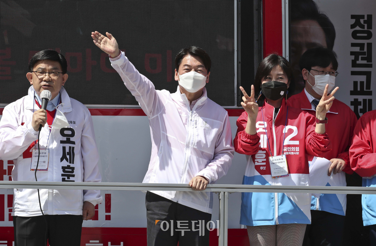 [포토] 오세훈 후보 지원유세 나선 안철수