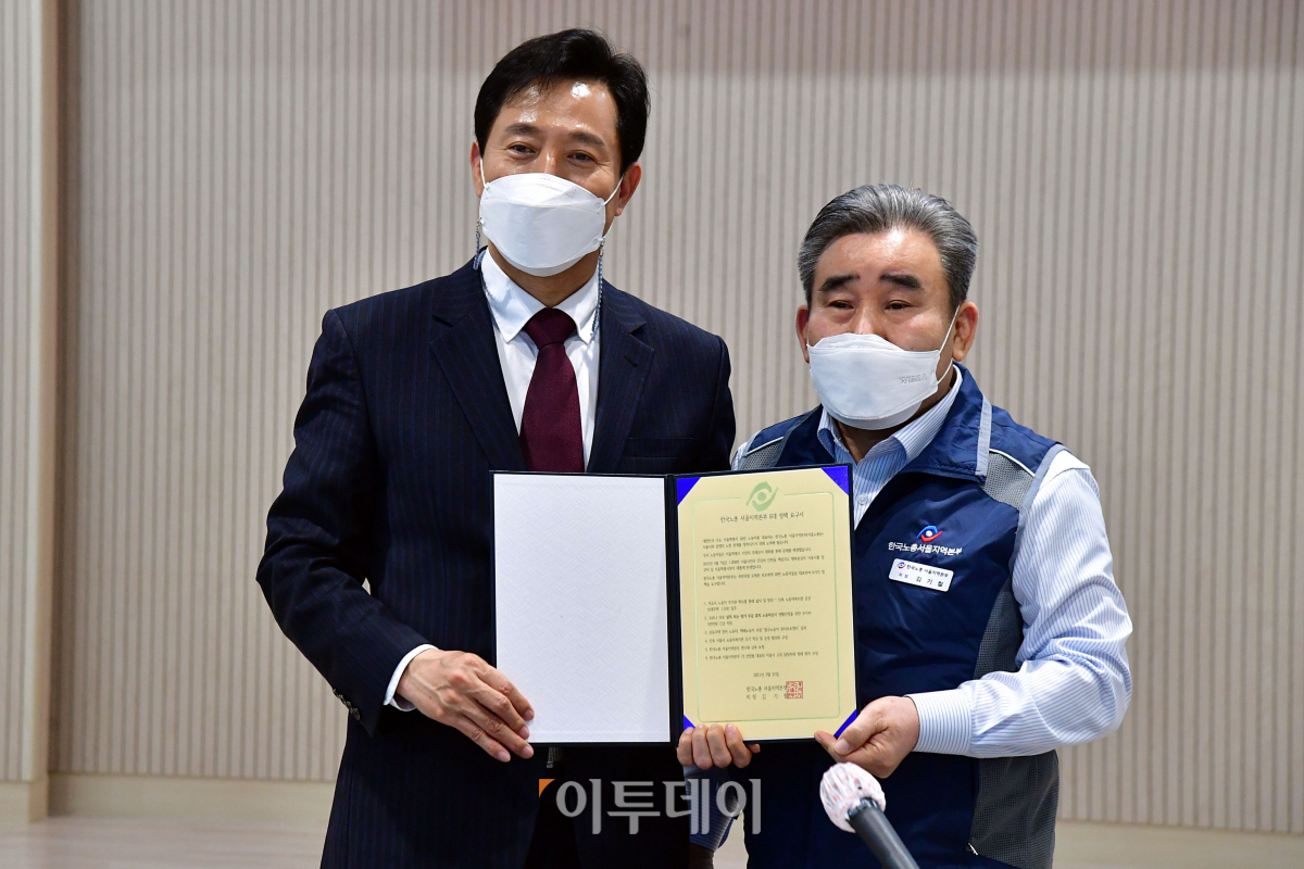 [포토] 한국노총 정책요구서 전달받은 오세훈 후보