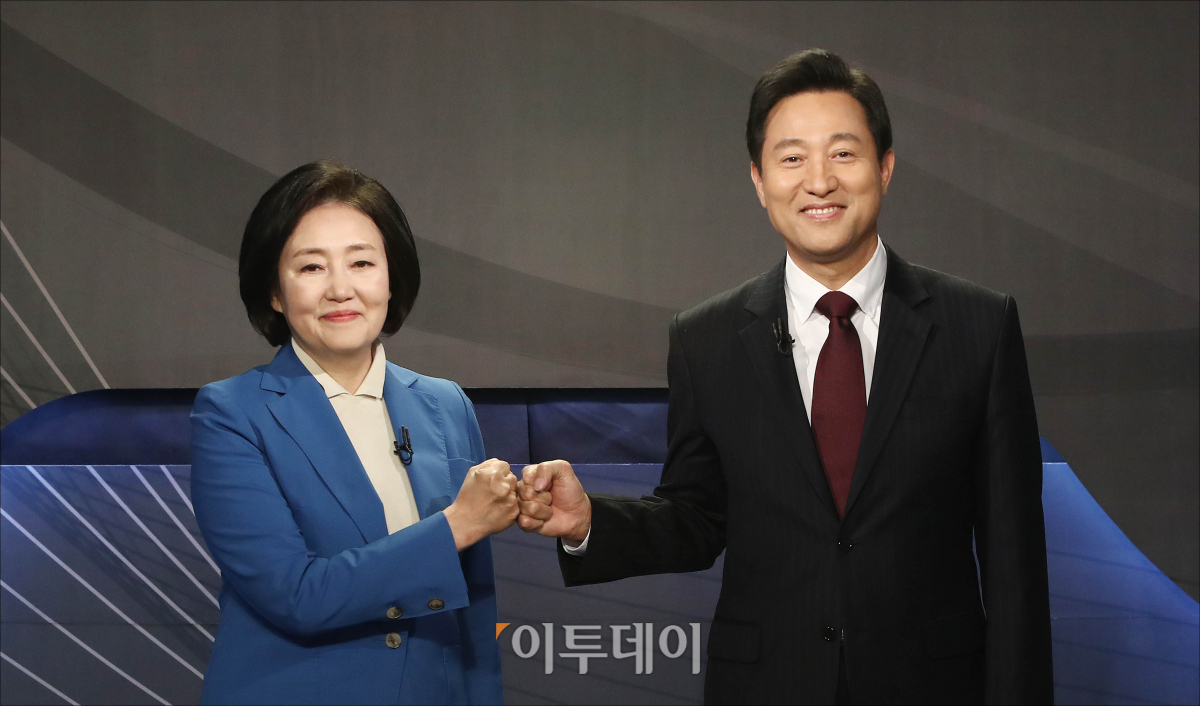 [포토] 마지막 토론회 참석한 박영선-오세훈 후보