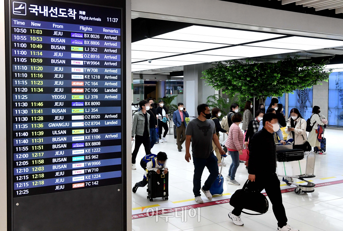 [포토] '봄나들이 나온 시민들로 붐비는 김포공항 국내선 도착장'