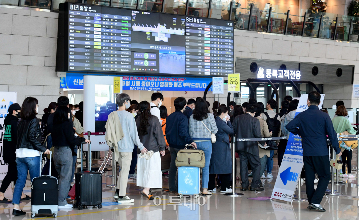 [포토] '봄나들이 나온 시민들로 붐비는 김포공항 국내선 출발장'