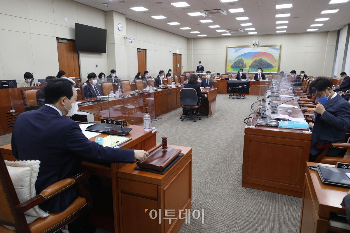 성일종 위원장이 12일 오후 서울 여의도 국회에서 열린 정무위원회 법안심사제2소위원회에서 의사봉을 두드리고 있다.