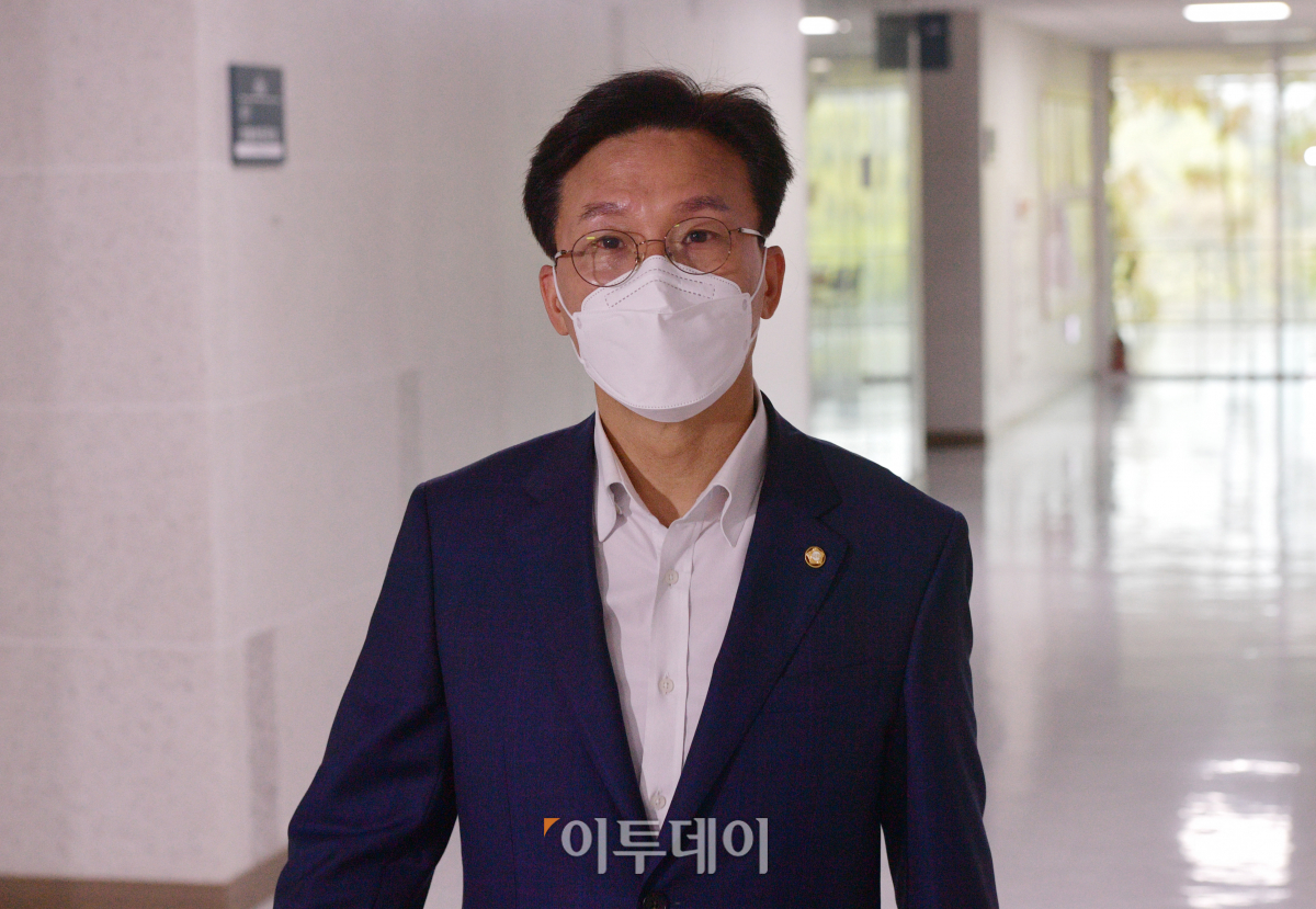 김민석 더불어민주당 의원이 13일 국회에서 열린 민주당 3선 의원 모임에 참석하고 있다.