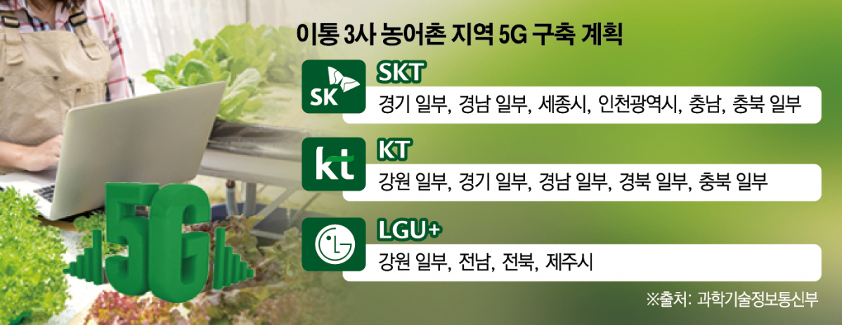 과학기술정보통신부는 통신 3사와 15일 읍ㆍ면 등 농어촌 지역에 5G 서비스를 조속하게 제공하기 위한 ‘농어촌 5G 공동이용 계획’을 마련해 발표했다.
