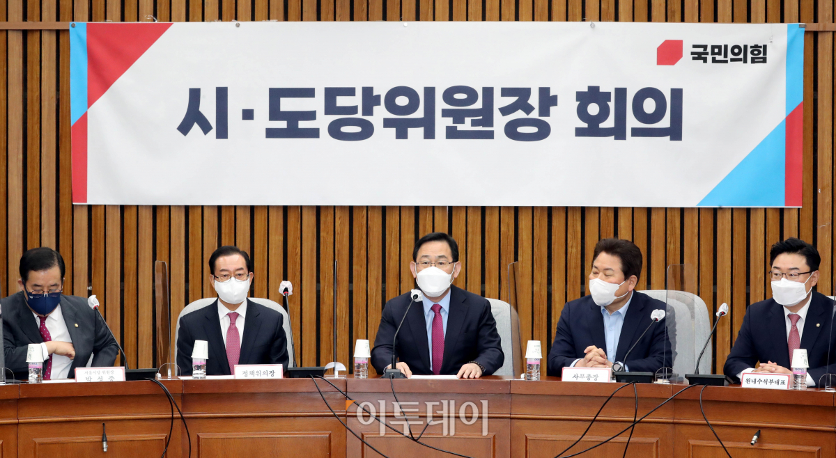 19일 오전 서울 여의도 국회에서 열린 국민의힘 시.도당위원장 회의에서 주호영 당 대표 권한대행이 인사말을 하고 있다.