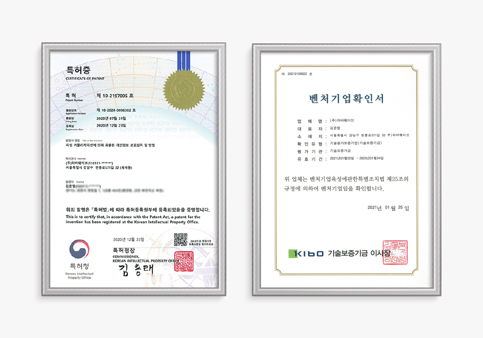 특히 2020년 특허 등록을 받은 ‘데이터 인젝션’ 기술은 가해자 해킹 서버에 더미 데이터(가상 전화번호)를 대량 삽입하여 유포 경로를 강제 변경하는 기술로, 라바웨이브 전문 연구팀이 다년간 개발한 자체 솔루션이다.