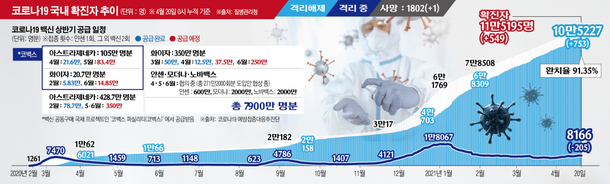 질병관리청 중앙방역대책본부(방대본)는 20일 0시 기준으로 코로나19 확진자가 전날보다 549명 증가한 11만5195명으로 집계됐다고 밝혔다. 국내발생이 529명, 해외유입은 20명이다.