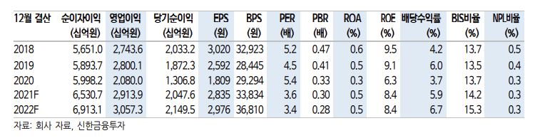 김 연구원은 “풍부한 시중 유동성에 따른 조달 비용 하락은 2분기까지 이어질 전망으로, 예대율이 98.4%로 감소하면서 마진 관리가 수월해졌다”면서 “금리 감면권 축소 등 3분기부터는 운용 수익률 개선까지 더해져 NIM은 4분기까지 지속적인 개선이 예상된다”고 말했다.