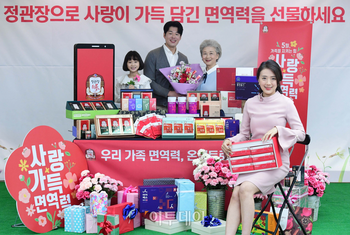 KGC인삼공사 정관장이 26일 서울 중구 충무로 한국의집에서 가정의 달 맞이 ‘5월 가족을 지키는 힘 사랑 가득 면역력’ 캠페인을 알리고 있다. KGC인삼공사는 내달 16일까지 정관장 인기제품을 구매하는 고객에게 다양한 구매 혜택을 제공한다.