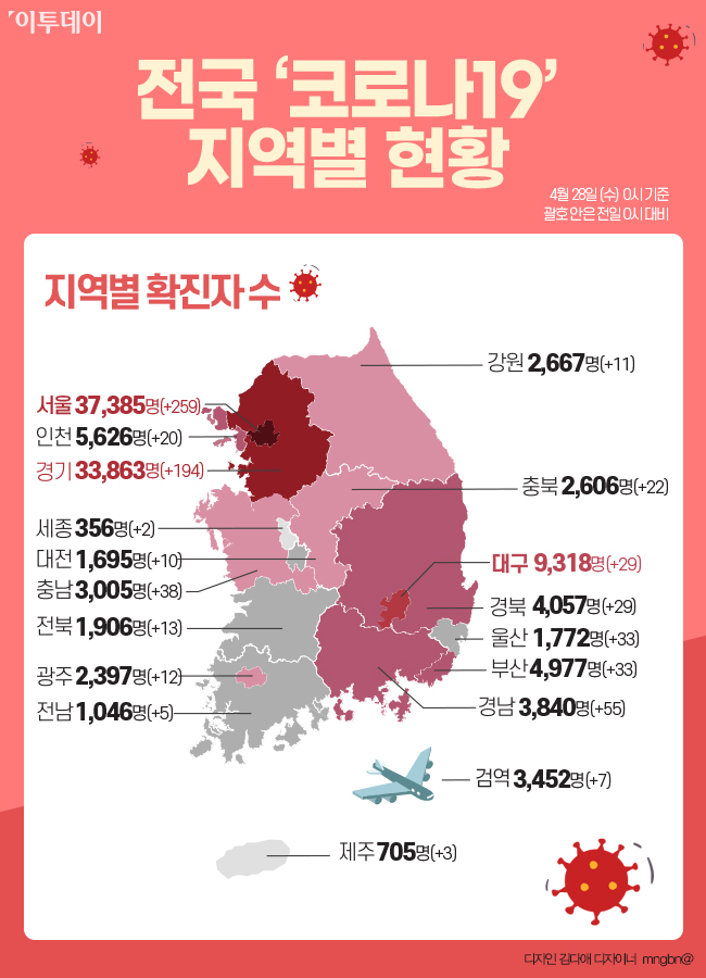 질병관리청 중앙방역대책본부에 따르면 4월 28일 0시 기준, 전일 0시 대비 775명이 추가 확진 판정을 받아 전국 확진자 수는 12만673명으로 늘었다.