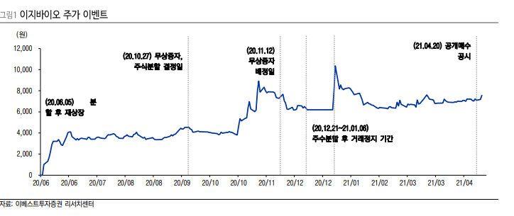 심지현 이베스트투자증권 연구원은 "이지바이오의 분할 이전 존속법인인 이지홀딩스가 20일에 공개매수신고서 및 공개매수설명서를 공시했다. 분할 전 예정됐던 실적 외 이벤트 마지막 단계인 지분스왑 및 지배구조 정리 과정을 마무리해나갈 예정"이라며 "현재 이지홀딩스와 이지바이오는 분할 후 일시적으로 별개 회사인 상태다. 지분스왑 및 지배구조 정리를 통해 최종적으로 동사가 이지홀딩스 밑으로, 이지홀딩스 아래 있던 첨가제 관련 해외법인들이 이지바이오 밑으로 편입되는 구조"라고 설명했다.