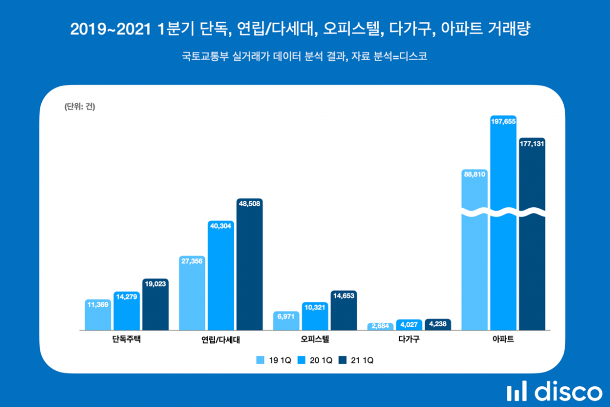 부동산 빅데이터 업체 디스코에 따르면 올 1분기 신고된 비(非)아파트 매매액은 23조7197억 원이다. 지난해 같은 기간(17조2082억 원)보다 37.8% 늘었다. 거래량도 6만8932건에서 8만6512건으로 25.5% 증가했다.