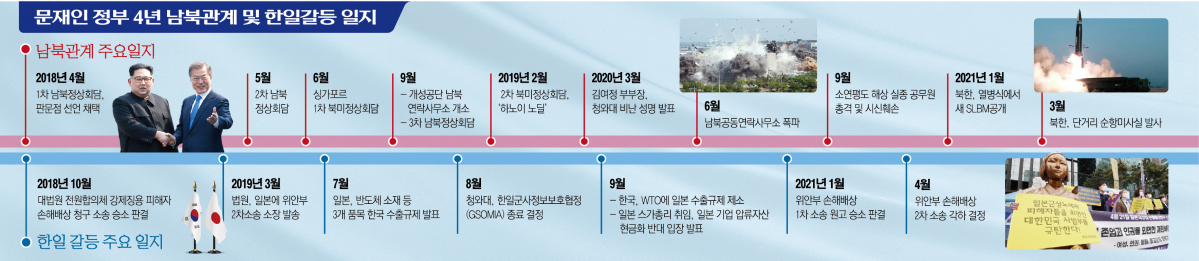 이런 가운데 최근 문재인 대통령의 한·일 관계에 대한 대응은 다소 아쉬움이 남는다는 시각도 있다. 3·1절 기념식에서 문 대통령은 “역지사지 자세로 머리를 맞대면 과거의 문제도 얼마든지 현명하게 해결할 수 있을 것”이라며 “우리 정부는 언제든 일본 정부와 마주 앉아 대화를 나눌 준비가 돼 있다”고 말했다. 여전히 고자세를 취하고 있는 다시 한번 유화 메시지를 먼저 던진 것이다. 하지만 임기가 1년밖에 안 남은 시점에서 한·일 관계가 드라미틱하게 개선될 가능성은 크지 않다는 관측이다.