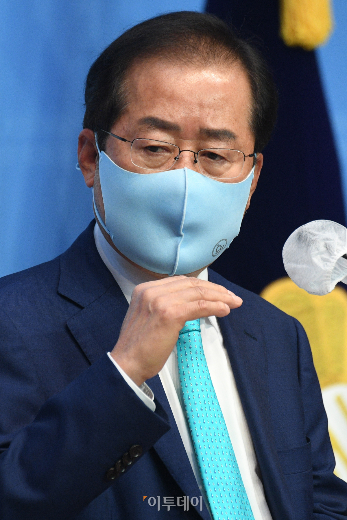 홍준표 무소속 의원이 10일 오전 서울 여의도 국회 소통관에서 기자회견을 열고 국민의힘에 복당할 것을 밝히고 있다.