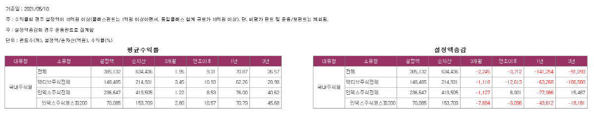 상황이 이렇다 보니 개인투자자들은 펀드에서 돈을 빼 직접투자에 나서는 상황이다. 최근 1년 간 국내 주식시장에서 85조원가량 순매수하는 사이 국내 주식형펀드에서 14조1254억 원이 빠져나갔다.