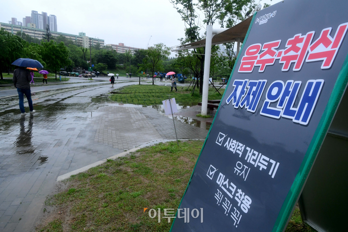 16일 서울 반포한강공원에 공원 내 취식 및 음주 자제 안내판이 설치돼 있다. 서울시는 지난 15일부터 10월 15일까지 5개월간 보건·폭염·수방·안전 4대 분야의 ‘2021 여름철 종합대책’을 가동한다고 밝혔다. 특히 한강공원에서는 취식·음주 행위를 자제시키고 조기 귀가·거리두기 안전문화 캠페인을 벌일 예정이다.