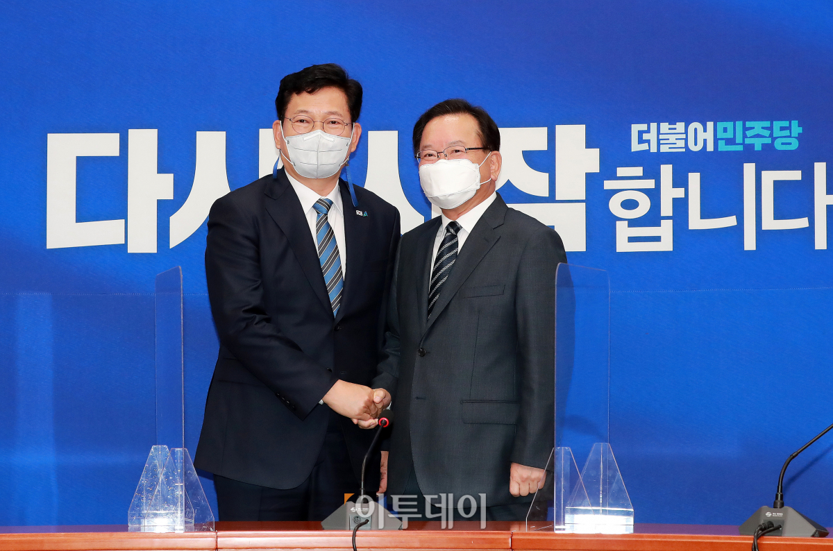 [포토] 악수하는 송영길 민주당 대표-김부겸 국무총리