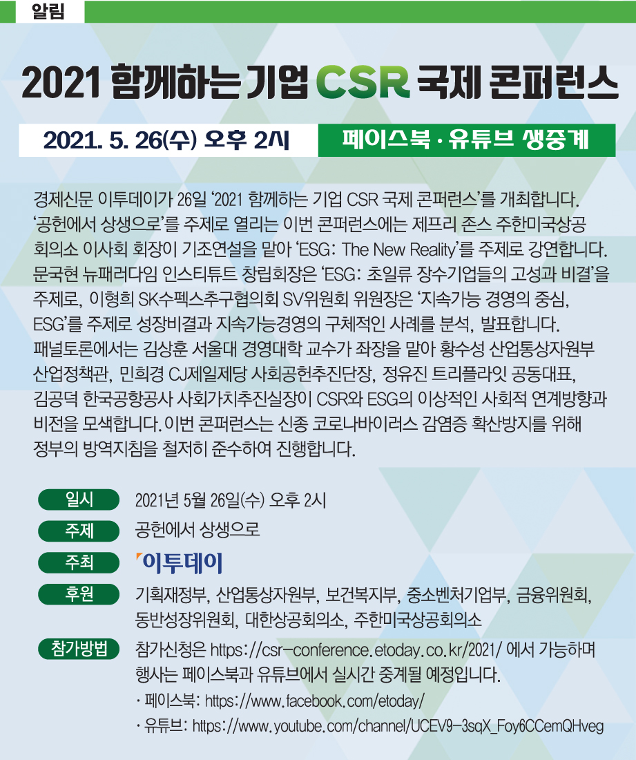 '공헌에서 상생으로' 주제로 오후 2시부터 대한상공회의소 국제회의장에서