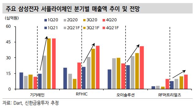 신한금융투자가 제시한 최선호주는 기가레인, RFHIC, 오이솔루션, RF머트리얼즈이며, 관심종목은 에치에프알, 이노와이어리스, 쏠리드 등이다.