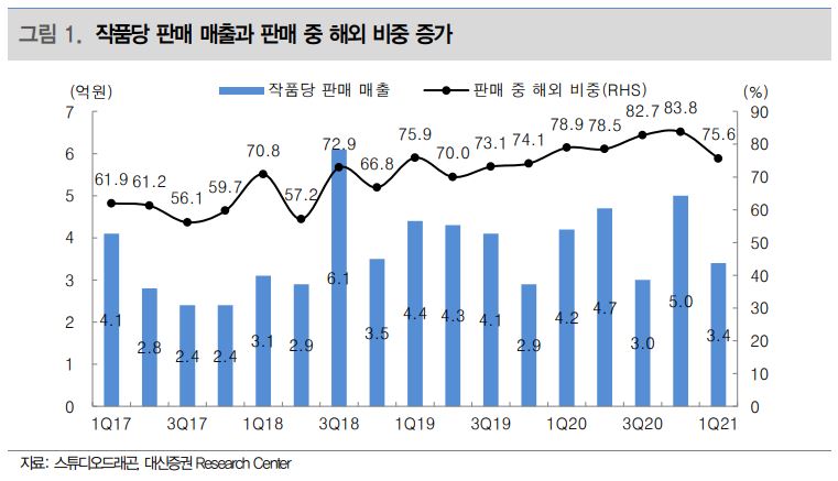 김회재 대신증권 연구원은 “단순 비교는 어렵지만, 미국 드라마의 회당 제작비가 한국 드라마의 한 편 제작비와 맞먹는 수준이기 때문”이라며 “에피소드당 제작비 100억 원의 10개 에피소드로 구성된 프로젝트가 1년에 5개, 각각 시즌1만 진행해도 드래곤의 20년 매출과 맞먹는 수준”이라고 분석했다.