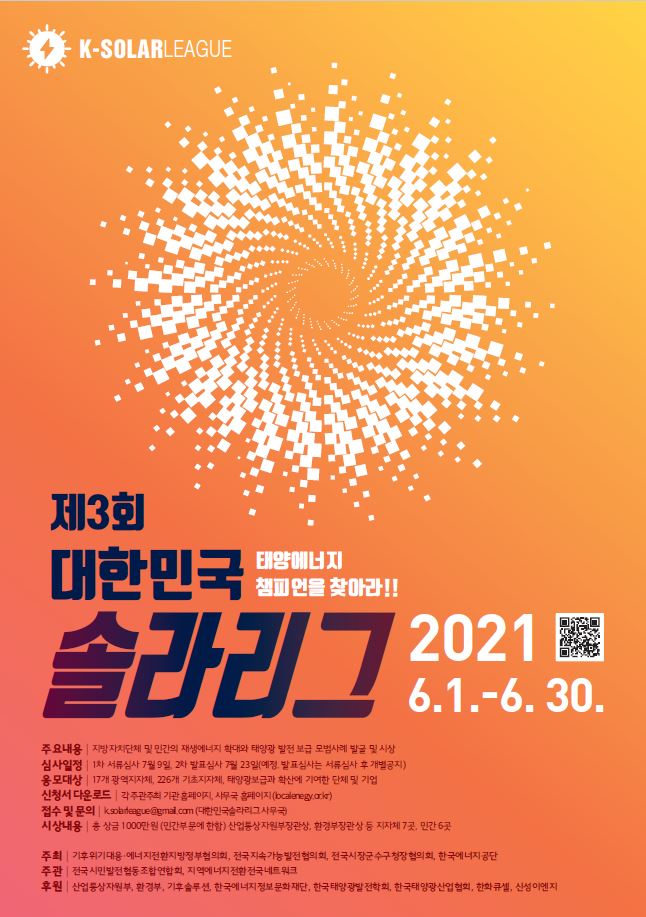 솔라리그는 기후위기대응 에너지전환지방정부협의회, 전국지속가능발전협의회, 전국시장 군수구청장협의회, 한국에너지공단 주최로 진행된다. 1일부터 30일까지 서류접수를 거쳐 올 11월 시상식을 연다.