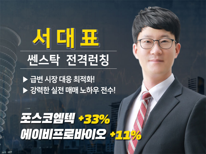 쎈스탁 “서대표”는 급변하는 시장 흐름에 발 빠르게 대응 가능한 변화무쌍한 “카멜레온 투자기법”으로 유명한 실전투자경력 20년 차의 베테랑 전문가이다.