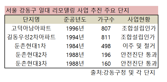 인근 둔촌현대2차(1988년·196가구)는 리모델링을 위해 2년 내에 이주와 철거 절차를 밟을 예정이다. 시공은 효성중공업이 맡는다.
