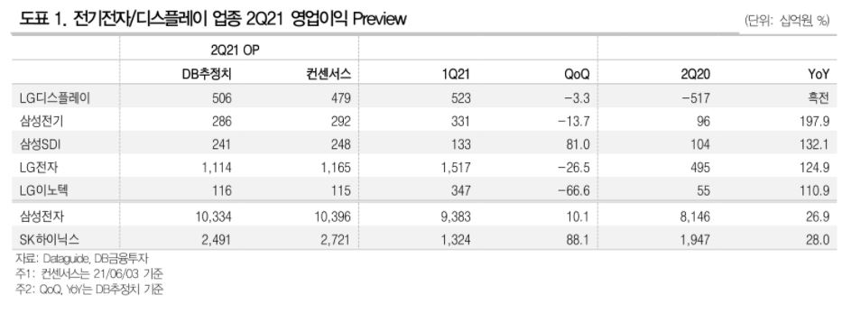 DB금융투자는 4일 “2분기는 전기전자(IT) 업체의 전통적인 비수기여서 1분기 대비 실적 급감이 일반적”이라면서 “올해 1분기 실적이 매우 좋았음에도 2분기 하락 폭이 완만하고 또 2분기 실제 영업이익도 컨센서스(시장추정치) 이상 가능할 것”이라고 전망했다.
