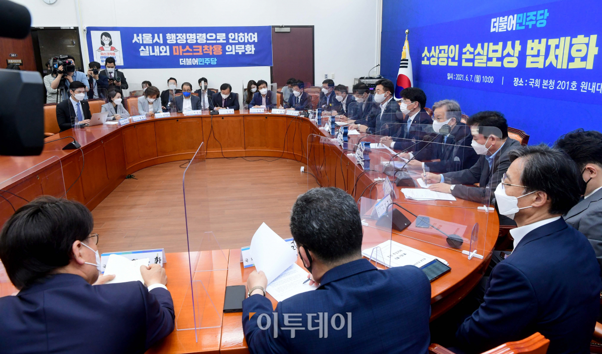 권칠승 중소벤처기업부 장관이 7일 서울 여의도 국회에서 열린 소상공인 손실보상 법제화를 위한 당정협의에서 모두발언을 하고 있다.