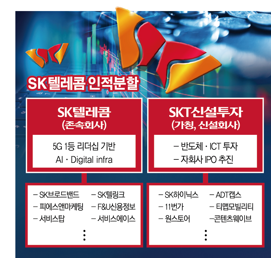 SKT는 10월 12일 임시주주총회를 거쳐 11월 1일(분할기일)에 존속회사와 신설회사로 새롭게 출범한다. 주식 매매거래정지 기간(10월 26일~11월 26일)이 종료되면 11월 29일에 변경상장(존속회사) 및 재상장(신설회사) 된다. 신설회사의 사명은 임시주주총회 전에 확정될 예정이다.