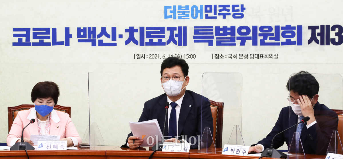 더불어민주당 송영길 대표가 14일 국회에서 열린 백신특위 3차 회의에서 발언하고 있다.