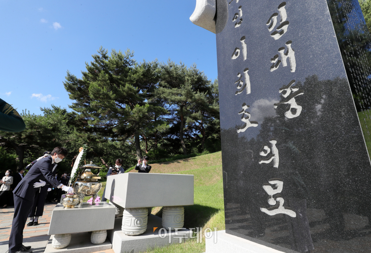 [포토] 김대중 대통령 묘역 참배하는 이준석 국민의힘 대표
