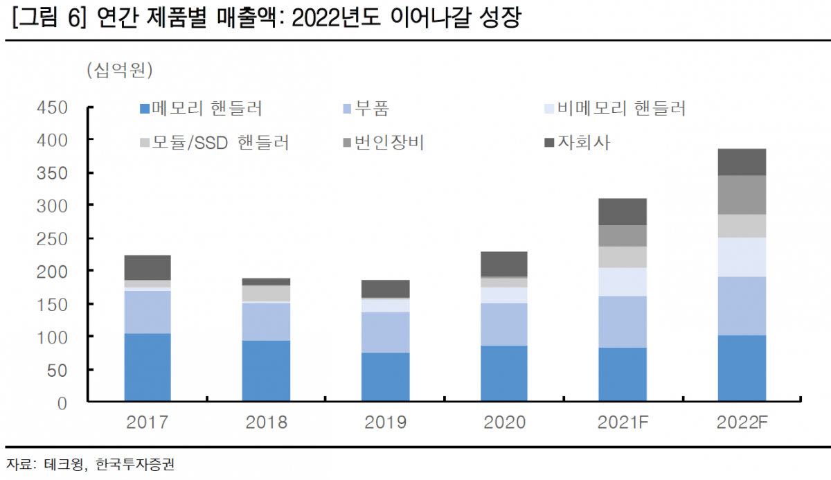 임 연구원은 “특히 내년은 국내 메모리반도체 고객의 DDR5 도입, 후공정 외주 확대 등으로 후공정 투자가 본격화돼 주력장비의 수요회복도 나타나 매출 증가세는 이어질 전망”이라고 분석했다.