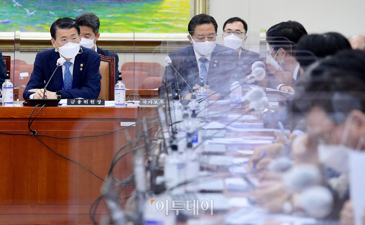 22일 서울 여의도 국회에서 열린 정무위원회 전체회의에서 은성수 금융위원장이 이정문 더불어민주당 의원의 질의에 답하고 있다.